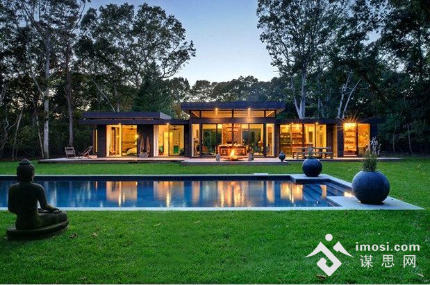这座由木块包裹的现代化平层大宅,是美国纽约罗宾斯路的Rope林间住宅,由建筑师Bates Masi设计完成。