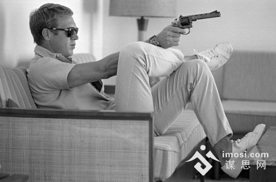 1930年3月24日,Steve Mcqueen出生在一个破碎家庭。童年坎坷,Steve混过街,进过少年收容所。后来陆续做过船员、加油站工人和伐木工人,甚至加入了美国海军陆战队。直到1959年,机会之神终于将steve带到伯乐Frank Sinatra面前。于是才有了影片《战地尤物》中那个穿着白色T恤和迷彩裤,佩着弹簧刀和汤普森冲锋枪,驾驶着吉普车飞快地穿越丛林障碍的英雄形象。终于在马龙-白兰度和James Dean之后,又一名能将紧身白色水手式圆领T恤穿得出神入化的男人诞生了。