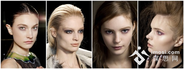 在本季的秋冬秀场上,Marni与Christopher Kane似乎想要将我们带回1960年以前那个极致典雅的时代,绚烂的印花与奢华的皮草都是对优雅的召唤,当然还包括了那如水彩般轻柔甜蜜的粉紫色眼妆。偏粉的紫色眼影在上眼睑大面积地晕染开来,随意却又透着以身俱来的自然感。在涂抹粉紫色眼影之前,先以象牙色的眼影膏为眼部打底来加深眼部轮廓,之后你大可直接用手指蘸取粉紫色眼影,轻扫于上眼睑,并从双眼皮褶皱处向眉骨位置渐渐晕染开。