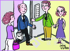 上下班时,电梯里面人非常多,先上来的人,要主动往里走,为后面上来的人腾出地方,后上的人,要视电梯内人的多少而行,当超载铃声响起,最后上来的人主动下来等后一趟。如果最后的人比较年长,新人们要主动的要求自己下电梯。笔者曾亲眼所见,某次早上上班时间,写字楼的电梯显得格外忙碌。最后上来的是一位50多岁的老白领,刚走进来,超载铃声就响了起来,他只好下来等下一趟电梯。电梯开到二楼,就停了下来,下电梯的是一位打扮得体、西服革履的小白领,大家的目光一下全扫向他,个个心里在想:这么年轻,还是二楼,为什么不让老白领上来,还影响大家的时间。真是没教养!