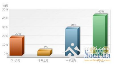 截止2月6日发稿前,搜房调查显示30%网友婚期安排在一年之内,45%网友选择一年以上,5%网友在半年之内,20%网友在3个月内。由此看出,逾5成以上网友将在今年结婚,2012年购房需求将以婚房为主。