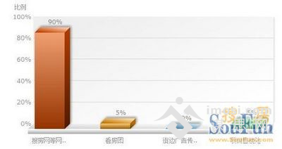 搜房网调查显示,90%网友在了解房源信息时选择搜房网等网站;5%网友选择看房团;5%选择了项目售楼处。