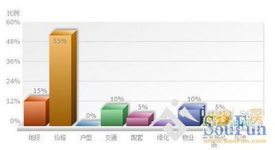 购置婚房时,下列哪几个因素是网友最关注的?55%网友选择了价格;10%网友选择交通;15%网友认为地段最重要;5%网友看中配套;10%网友最关注物业公司;5%网友最关注开发商品质。