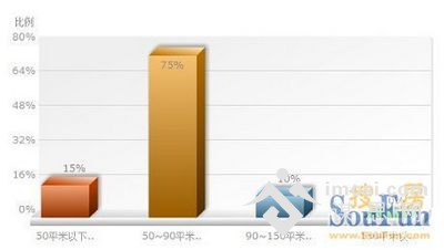 搜房网调查显示,在购置婚房时的意向户型时,75%网友选择50~90平米中小户型;15%网友选择50平米以下小户型;10%网友选择90~150平米户型。