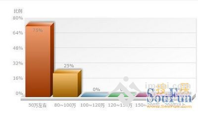 网友能够接受的婚房总价在什么范围?75%网友选择50万;25%网友选择80~100万。调查显示,一百万以上房源网友“无暇顾及”。