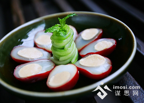 鸽蛋酿鹅肝算得上是创意杭州菜,选用了鸽子蛋和鹅肝两样食材,用杭州传统手法制作。鸽子蛋用龙井茶卤过,味道清香,蛋清鲜嫩弹牙,包裹着鹅肝,口感层次丰富。