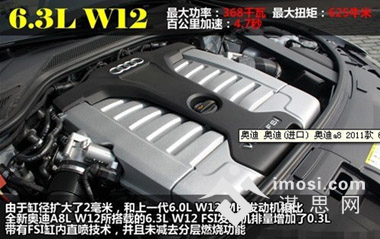 动力方面,采用6.3L排量发动机的奥迪A8L W12车型最大输出功率达到了500马力(368千瓦),峰值扭矩超过625Nm,其百公里加速时间为4.7秒,最高时速被限定在了250Km/h。