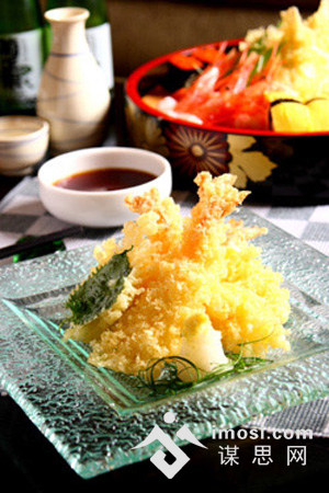 都是油炸,炸鸡块薯条和炸天妇罗的“名声”却是相差甚远,一个是上不得大雅之堂的“垃圾食物”,一个竟然是出入高级场所的“贵料”;一个吃来满嘴油腻,一个吃来却是清香四溢。细细数来,天妇罗的原料不过是面粉、鸡蛋、紫苏叶(又叫大叶)、萝卜、姜、鱼虾、蔬菜,寻常可见,生料过油炸熟也是家常的做法。偏偏日本人就将天妇罗做成了一大菜系,做成了高级料理。