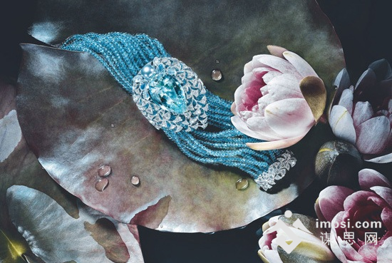 清澈如水的海水蓝宝石和蓝宝石,凝聚水之灵气,完美诠释了以清新香调为灵感的珠宝珍品。在海蓝宝石周围点缀着灰色珍珠和绿柱石,就像铃兰花束沐浴在晨光薄雾里。如水波般摇曳不止的珠宝,演绎出一片清新世界。