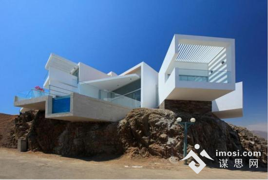 这一奇特的秘鲁海滨住宅位于一处陡峭的沙子山区。场地形成半弧形,高出海平面48米,上下高度差8米。这是由Vértice Arquitectos建筑事务所设计的I-5滨海豪宅项目,享受180度南侧的太平洋视野,及东侧和北侧开阔的海岸美景。