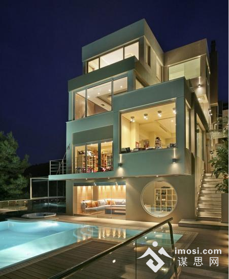 这幢定制全景别墅,位于希腊雅典南郊,设计简约、内饰豪华,可观大海和山景。别墅由Dimitris Interiors Economou建筑事务所设计,2006年落成,采用顶级的建筑材料和意大利家具打造。