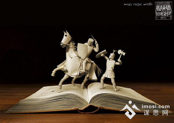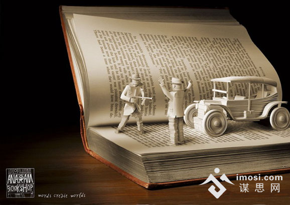 古语有云:“书中自有黄金屋,书中自有颜如玉”,而这家捷克书店Anagram推出的纸雕风格平面广告Words create Worlds——文字创造世界,正文雅地传达了这一诉求。