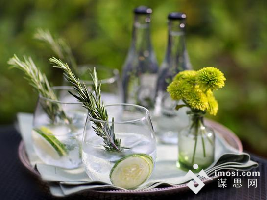 晶莹剔透的杯体中,冰块悬浮在酒中,气泡包围着柠檬薄片,感觉清凉而又爽口。