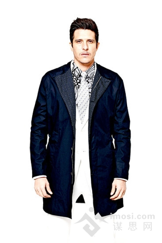 经典的印花风格衬衣,黑白色大花图案让男人备显洒脱。这里,我们为它配搭了白色的西服和白色印花真丝领带,并和风衣的衬衣图案相映成趣。