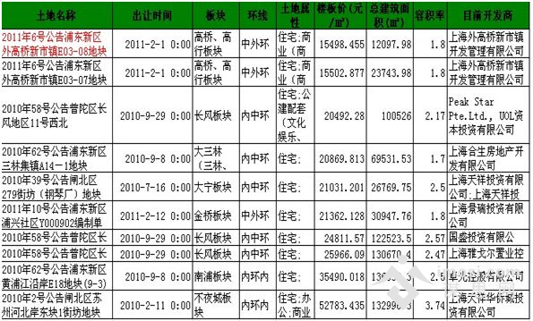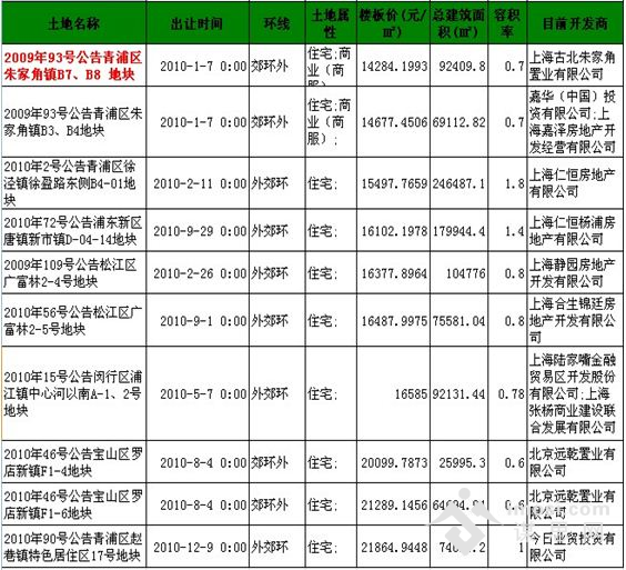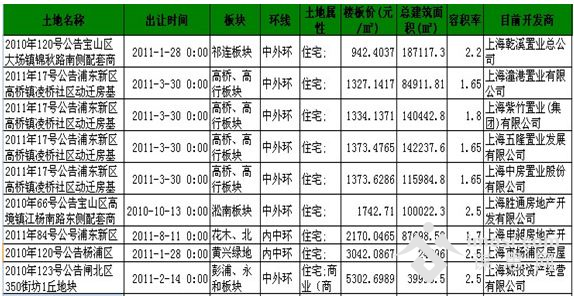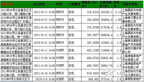 购房者还在祈祷房价继续下降,但是一个不争的事实也告诉我们,开发商真的已经降到了极限。目前在售的大部分房源为开发商在2010、2011年拿的地,楼板价都普遍较高,外环部分房源的楼板价已经破万,开发商还能往哪里降呢。以下是2010、2011年上海成交的外环外以及外环内土地价格前十名和后十名。