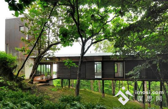 呈长方体的建筑被十几条支柱架空在Nosara山的一处的小斜坡上,由于大面积地使用大玻璃窗,自然光线可以布满整个房子,美丽的景观也可渗透到空间的每个角落。在此处,可以清晰地观赏到太平洋的壮观景色。