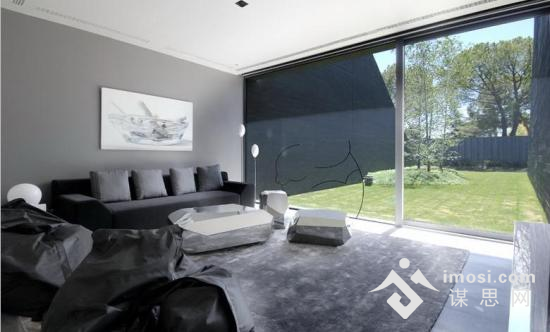 为了配合住宅的主题,室内装修也尽量采用倾斜的棱角设计,除了卧室客厅等,它还配备了一个室内泳池。卧室、书房、餐厅等全部开放式地朝向花园。整栋建筑给人以混凝土墙与绿色植被完美结合的感觉,房子被隐藏在了一片绿色之中。而其花园中还有一处静谧优雅的湖泊。