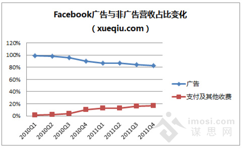 不过,截至2011年12月,Facebook有50%的月度活跃用户(MAU)来自移动端,其中38%通过智能手机上的应用访问。面对如此之大比例的活跃用户市场,由于Facebook还没有开始将广告系统移植到移动端,所以只能眼睁睁地看着机会溜走。