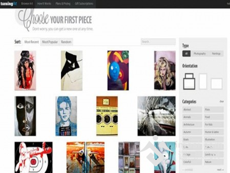 关于TurningArt的运作模式是这样的,通过和美国国内大量独立艺术家进行合作,让消费者可以试用(或者称租借)大量原创艺术作品,而不必花费更多无法承担的数目去进行艺术品购买。每月只需10美元,顾客就可以搜寻这家初创公司藏品库中的大量独立作品,然后选择自己喜欢的,公司就可以把这件艺术品的印制品直接邮寄至用户家里。