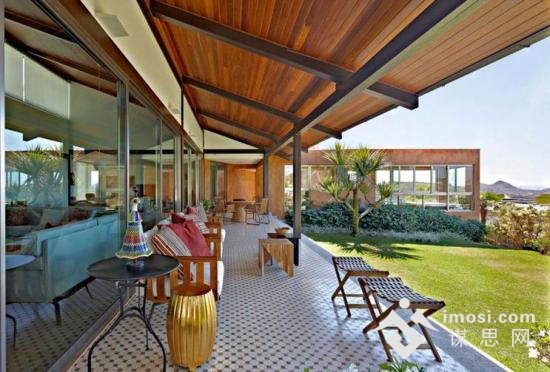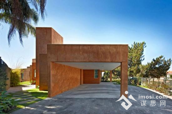 该住宅是一个现代的平层别墅,由贝洛奥里藏特工作室David Guerra Architecture And Interior操刀完成。整个外观呈“泥巴红色”,平添了几分平易近人的气质。豪宅有外墙围合,院前院后都有斜坡草坪。大片玻璃面板的使用,使得别墅通透明亮。