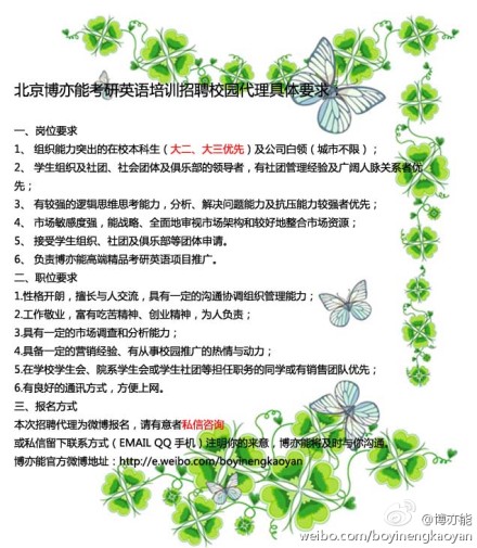 欢迎你来博亦能考研英语培训官方微博报名:http://e.weibo.com/boyinengkaoyan