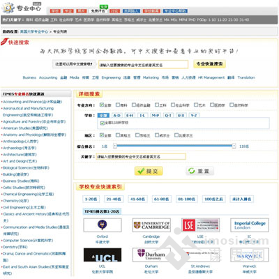 中英网“英国大学专业中心”是一个涵盖TIMES排名所有高校、近20000个专业的信息库。