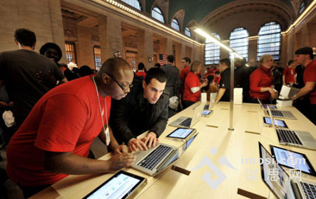 美国人对智能手机的强烈热爱为电子零售商店百思买和电信运营商Verizon等创造了成千上万的工作岗位,今年还将为美国经济注入数十亿美元。在这样的环境下,苹果零售店成为了毫无争议的霸主。凭借无瑕疵的设计、周到的服务和可观的收入,苹果零售店创造了销售奇迹。调研公司Retail Sails数据显示,2011年苹果全球327家零售店每平方英尺的营收额高于任何一家美国零售商,而且是排名第二的世界著名珠宝品牌蒂芙尼(Tiffany)的两倍之多。