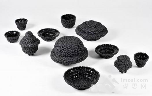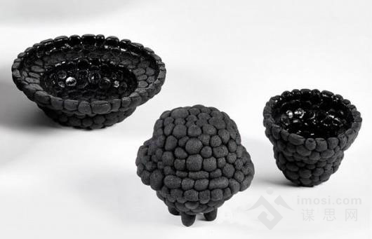 创意设计的种种产品都让人耳目一新,其实用废旧材料设计的创意产品更让人刮目相看。这是Debbie Wijskamp的作品“black ruby”。这组碗和壶产品所用的材料基本是废弃产品,主要为汽车废轮胎胶粉和聚氨酯成膜剂材料。如泡泡一般的小圆球如同组合零件,一个个拼接在一起,材料的特殊性让这些壶和碗在视觉上充满趣味性。