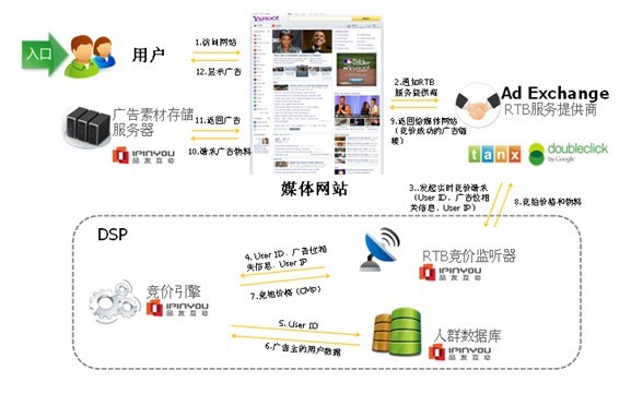 实现RTB广告交易,首先行业内要出现至少一个广告交易平台(Ad Exchange)。这个广告交易平台的出现,就打破了媒体的界限,不再是一个一个分割开来销售媒体的广告位置,而是将成千上万、甚至十几万的媒体网站聚合在一起,建立起一个广告交易平台,在这个平台上以“人”为单位去销售媒体资源。因此,某个网站上某个广告位置展示怎样的广告位,就不再像传统广告位置销售那样是事前定好的,而是可以根据每一个浏览这个位置的“人”来展示最合适的广告。