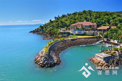 这幢水边别墅位于澳大利亚昆士兰州北海岸圣灵群岛(Whitsundays)的曼德勒角(Mandalay Point)上,这里是旅游和帆船运动胜地。别墅为传统地中海风格,带私人码头和停机坪,紧邻大海,要价折合人民币约1.67亿元。
