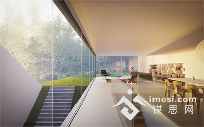 据介绍,住宅的业主是一对夫妇,他们还要求有一个相对独立的客房,因此建筑被分为两部分:其中一个是内向区域,它依据周围地形条件,由一系列小的开放空间组成;另一部分是一个开放的空间,它朝向森林和山谷美景,成为开放的起居空间的延伸。住宅抽象的坡屋顶造型借鉴了周边建筑常见的屋顶类型。这个以开放性为概念的设计最大限度的扩大了住宅的开放空间,让居住和自然在视觉上相融合。